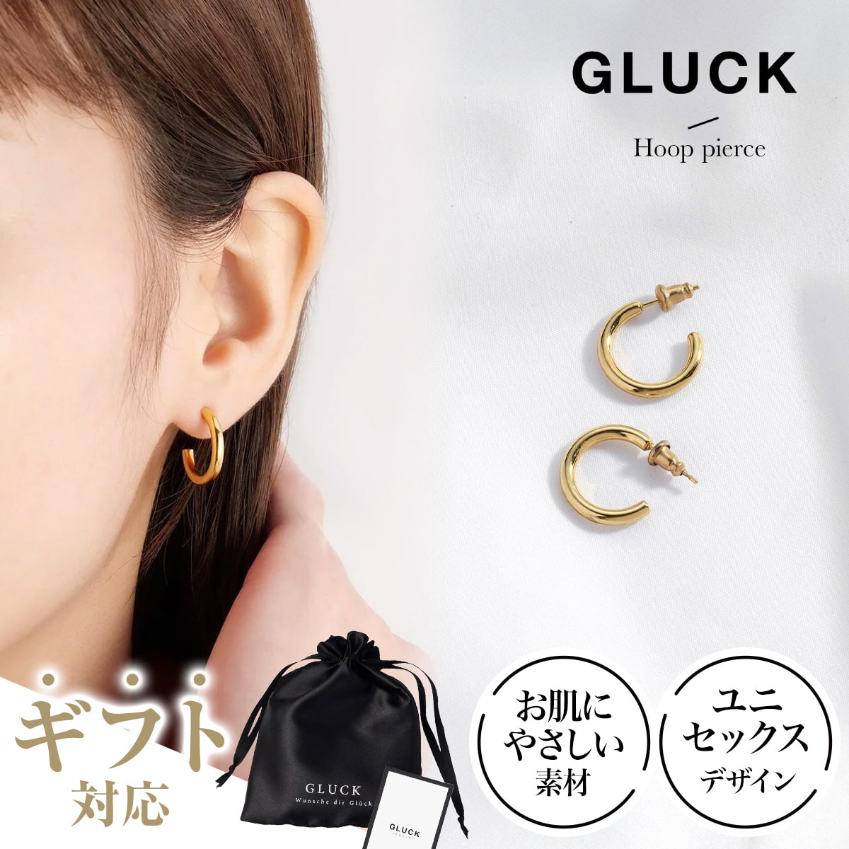 ピアス アクセサリー フープピアス レディース メンズ 金属アレルギー 錆び ゴールド シルバー つけっぱなし シンプル クリスマス ギフト プレゼント 両耳 GLUCK