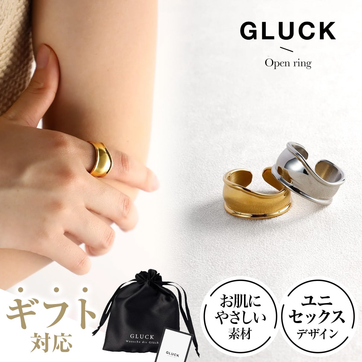 リング 指輪 アクセサリー レディース メンズ 金属アレルギー 錆び ゴールド シルバー ペア ペアリング カップル クリスマス つけっぱなし お揃い ギフト プレゼント GLUCK