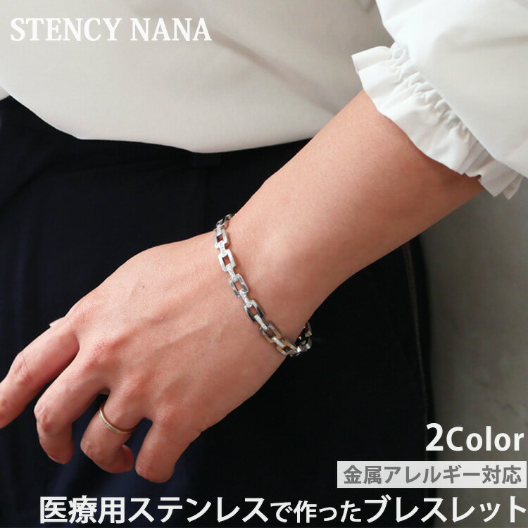 金属アレルギー対応 ステンレス ブレスレット リンクチェーンブレスレット ユニセックスレディース メンズ バイカラー シルバーチェーン 太め