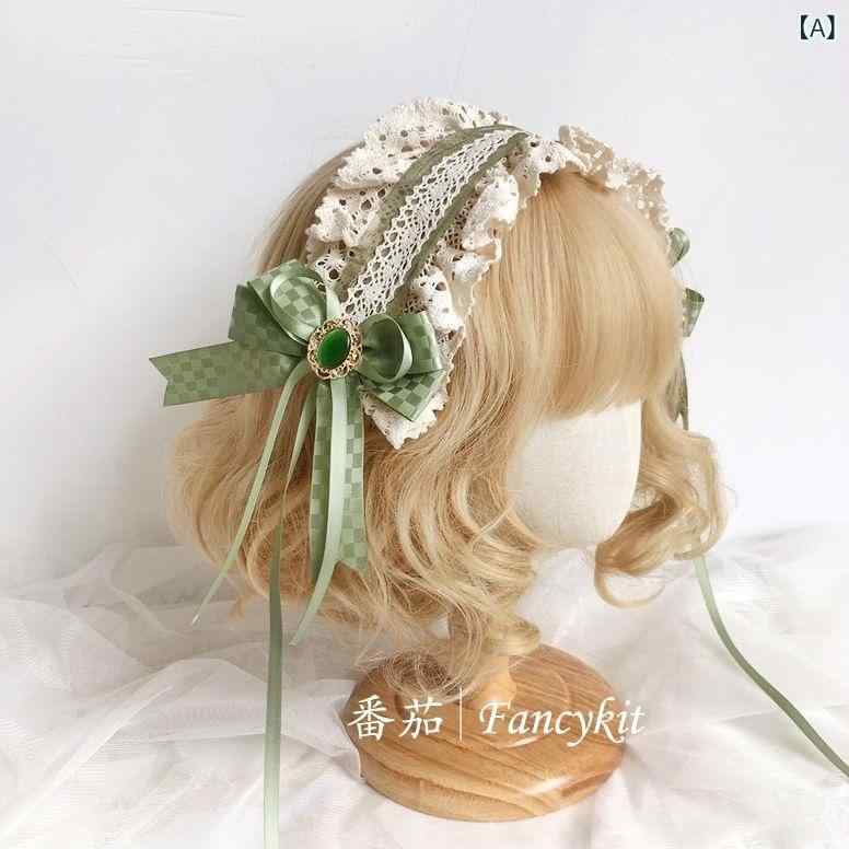 ヘアクリップ レディース 少女 森ガール ロリータ 田園風 かわいい 若草色 レース リボン 布製 ヘッドドレス ヘアアクセサリー
