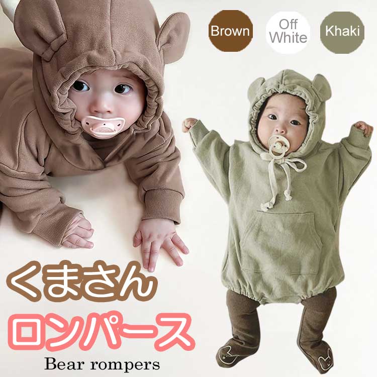 正規品 ベビー ロンパース ベビー服 くま くま耳 フード 1歳 誕生日 赤ちゃん 新生児 女の子 男の子 スウェット パーカー カバーオール 着ぐるみ キッズ 長袖 オールインワン 秋冬 子供服 かわいい 保育園 韓国 おくるみ ガーゼ 出産祝い プレゼント 【楽ギフ_○○】【-】