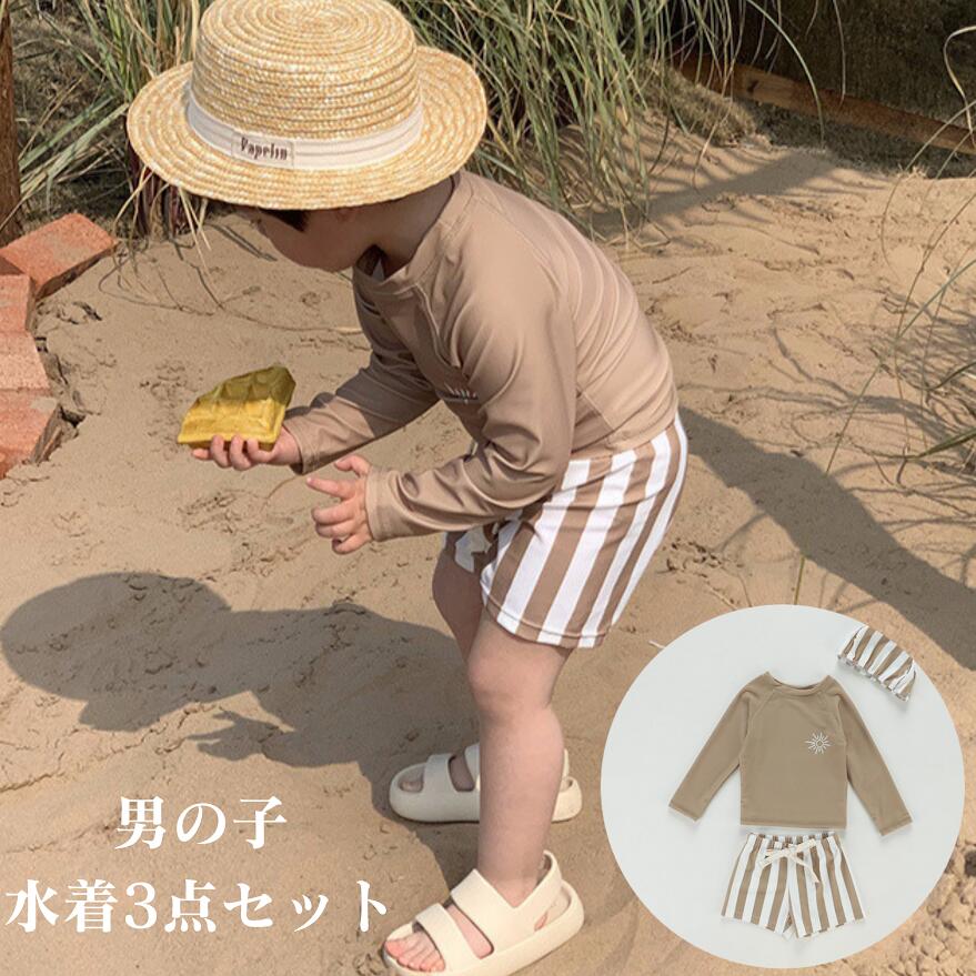 男の子 水着 3点セット キッズ スイムウェア キャップ付き 上下 日焼け セパレート 上下セット ラッシュガード ジュニア 子供 スイミング プール 海 ビーチ旅行 スイムパンツ おしゃれな水着 80 90 100 110 120