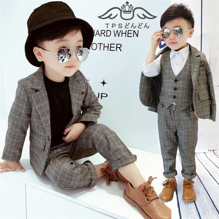 男の子 子供スーツ 入学式 フォーマルスーツ 3点セット スーツ フォーマル 子供服 男の子スーツ キッズ 長袖 英国風 記念日 撮影 おしゃれ プレゼント 七五三 発表会 入学式 お宮参り 入園式 卒園式 結婚式 90 100 110 120 130 140