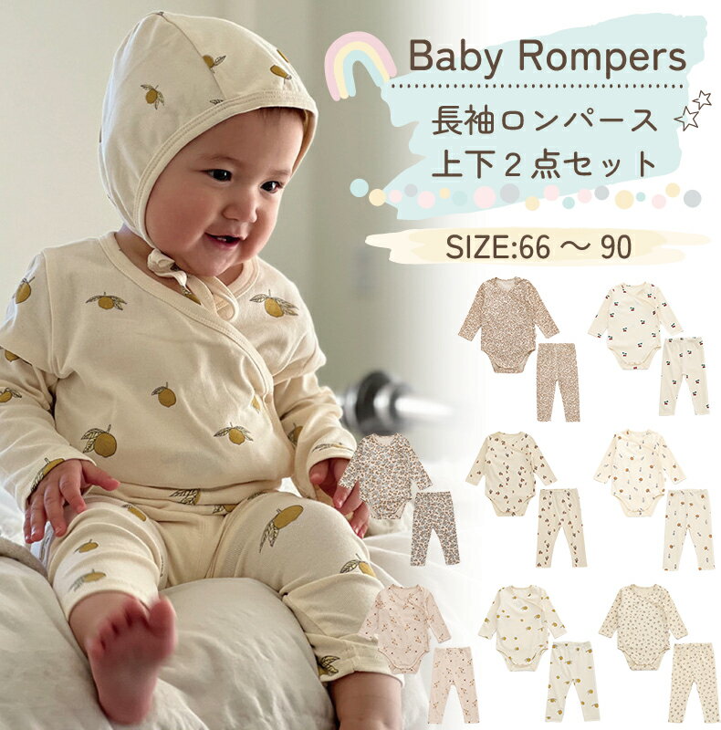 【感謝祭限定 14%OFFクーポン】ロンパース 2点セット 長袖 秋 冬 女の子 男の子 ベビー服 ベビー 新生児 カバーオール 綿 赤ちゃん おしゃれ ロンパース 前開き ベビー パジャマ パンツ コットン カジュアル プレゼント ギフト 春 秋冬 防寒 かわいい 出産祝い
