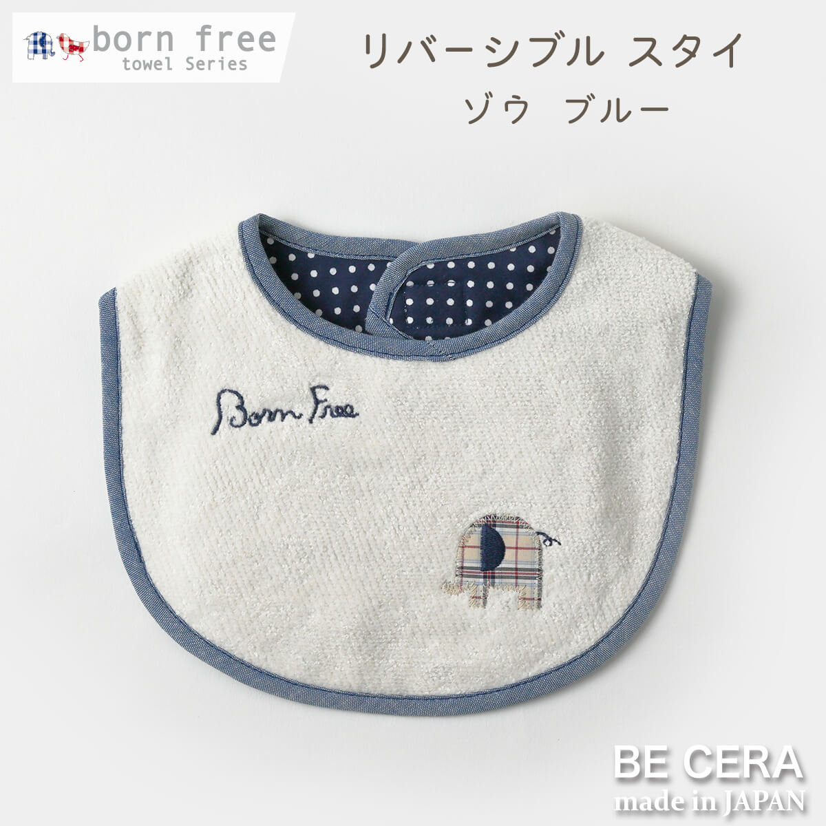 【2点以上で送料無料クーポン】 よだれかけ born free ボンフリー リバーシブル タオル スタイ ゾウ 紺 今治産タオルベビー用品 出産祝い おしゃれ かわいい 日本製 男の子 赤ちゃん プチギフト