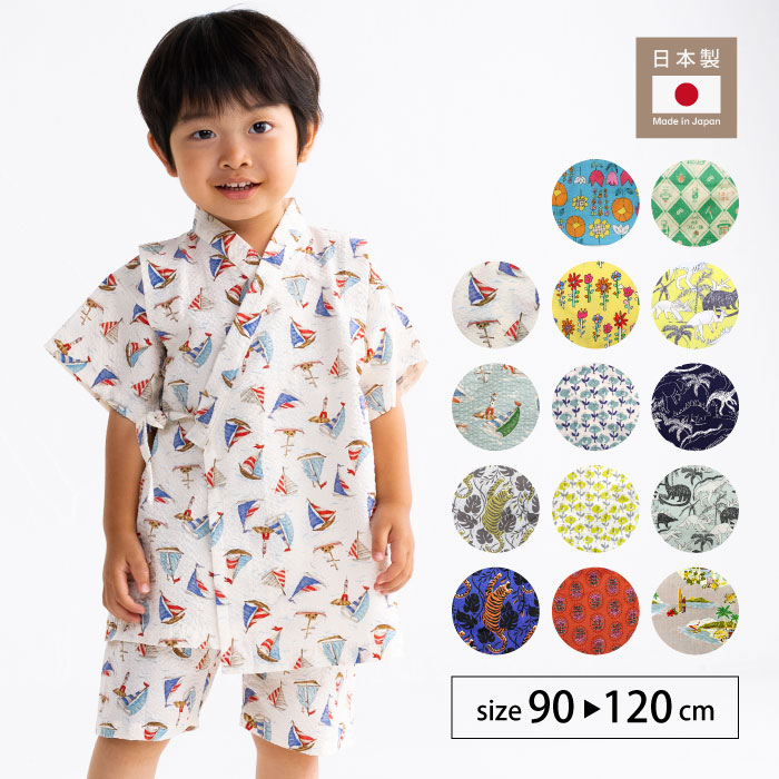 【クリアランス】stample スタンプル 甚平 パジャマ 夏祭り 花火 日本製 子供服 こども キッズ 男の子 女の子 夏 綿100% 薄手 薄地 かわいい おしゃれ 涼しい ルームウエア 部屋着 子供 お揃い 浴衣 シンプル じんべい トラ 花 恐竜 ベビー キッズ 32991 32992