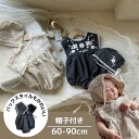 ロンパース 女の子 半袖 ボンネット ベビー 赤ちゃん 服 ベビー服 かわいい おしゃれ 春 夏 春夏 コットン 出産祝い 夏服 カバーオール ベージュ ネイビー ボンネット付き ハーフバースデー お宮参り 60cm 70cm 80cm 90cm