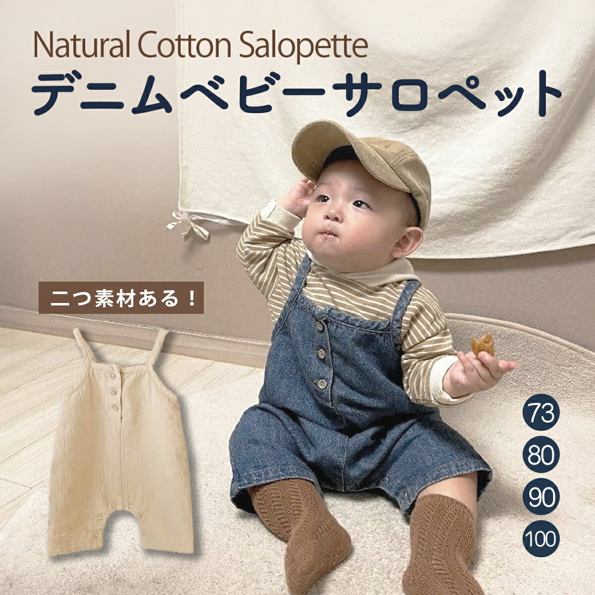 襟元の刺繍がかわいい赤ちゃん・ベビーのロンパースです。 上品なネイビーとベージュの2色。 ボンネット付きです 海外子供服・韓国子供服(海外ベビー服・韓国ベビー服)好きにも 送料無料でお届けします 【サイズ】 サイズ / 着丈 / 身幅 / 肩幅 60 / 38 / 26 / 31cm(表記は66) 70 / 41 / 28 / 33cm(表記は73) 80 / 44 / 30 / 35cm 90 / 48 / 32 / 37cm 【ご注意】 ・海外製品のため、日本製と比べると糸の始末やほつれ、縫製が甘いものが多いです。 一点一点検品をして発送しておりますが、予めご了承頂けますと幸いです。 ・タグが表側についている場合がございます。 ・もし万が一、商品に不備がございましたら責任を持って対応させて頂きますが基本的には返品はお断りしております。 ・お洋服以外の付属品はつきません。 ロンパース 女の子 半袖 ボンネット ベビー 赤ちゃん 服 ベビー服 かわいい おしゃれ 春 夏 春夏 ノースリーブ コットン 出産祝い 夏服 カバーオール ベージュ ネイビー ボンネット付き ハーフバースデー お宮参り 60cm 70cm 80cm 90cm お食い初め 韓国ベビー服 韓国子供服 海外ベビー服 海外子供服 おすすめ ギフト プレゼント襟元の刺繍がかわいい赤ちゃん・ベビーのロンパースです。 上品なネイビーとベージュの2色。 ボンネット付きです 海外子供服・韓国子供服(海外ベビー服・韓国ベビー服)好きにも 送料無料でお届けします 【サイズ】 サイズ / 着丈 / 身幅 / 肩幅 60 / 38 / 26 / 31cm(表記は66) 70 / 41 / 28 / 33cm(表記は73) 80 / 44 / 30 / 35cm 90 / 48 / 32 / 37cm 【ご注意】 ・海外製品のため、日本製と比べると糸の始末やほつれ、縫製が甘いものが多いです。 一点一点検品をして発送しておりますが、予めご了承頂けますと幸いです。 ・タグが表側についている場合がございます。 ・もし万が一、商品に不備がございましたら責任を持って対応させて頂きますが基本的には返品はお断りしております。 ・お洋服以外の付属品はつきません。 ロンパース 女の子 半袖 ボンネット ベビー 赤ちゃん 服 ベビー服 かわいい おしゃれ 春 夏 春夏 ノースリーブ コットン 出産祝い 夏服 カバーオール ベージュ ネイビー ボンネット付き ハーフバースデー お宮参り 60cm 70cm 80cm 90cm お食い初め 韓国ベビー服 韓国子供服 海外ベビー服 海外子供服 おすすめ ギフト プレゼント
