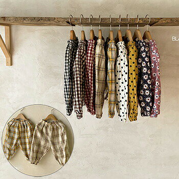 【即納】【KIDS】デイリーイージーパンツ 綿 春 秋 シンプル 花柄 ドット チェック ズボン ジュニア ボトム 男の子 女の子 キッズ ベビー かわいい 韓国 子供服 おしゃれ baby 子ども服 女児 男児 【COCORIAココリア】