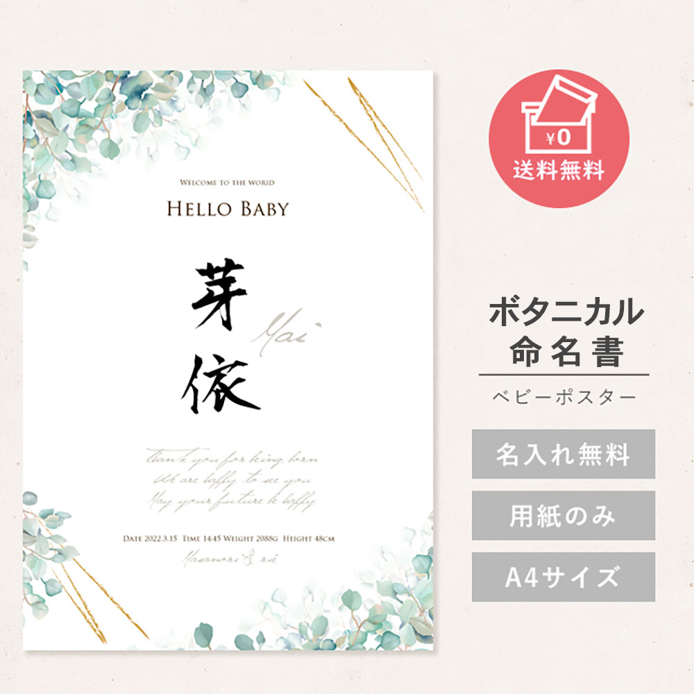 メール便送料無料 【名入れ無料】 赤ちゃん 命名書 オーダー 命名紙 ボタニカル ベビーポスター 用紙のみ 漢字 ローマ字 身長 体重 A4 命名 おしゃれ 誕生日 記念 お祝い かわいい ベビー 女の子 新生児 男の子 インテリア 100日祝 0歳 出産祝い