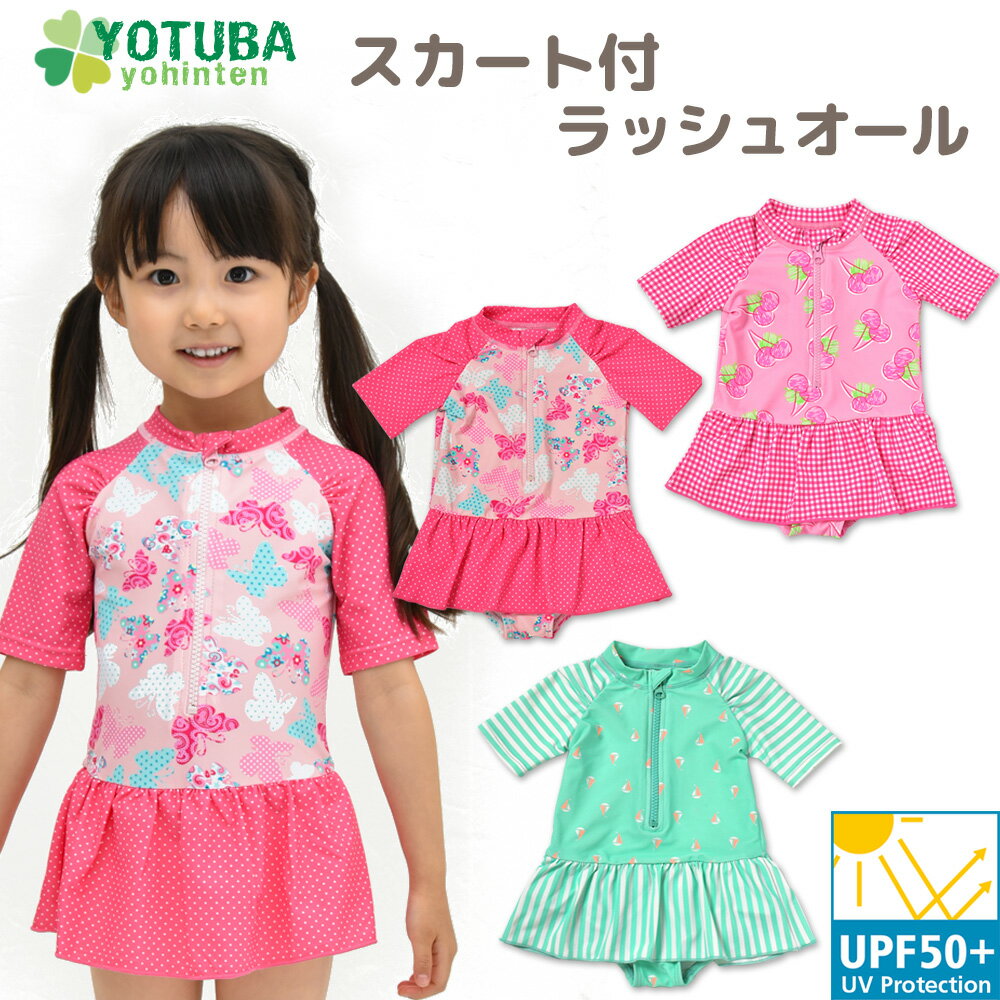 セール!スカート付 ラッシュオール トドラー 70 80 UPF50+ ラッシュガード ワンピース スカート 水着 子供 女の子 ベビー ヨット チェリー バタフライ さくらんぼ ちょうちょ おしゃれ かわいい UV 1歳 2歳 3歳 水遊び プール 保育園 幼稚園 よつば洋品店