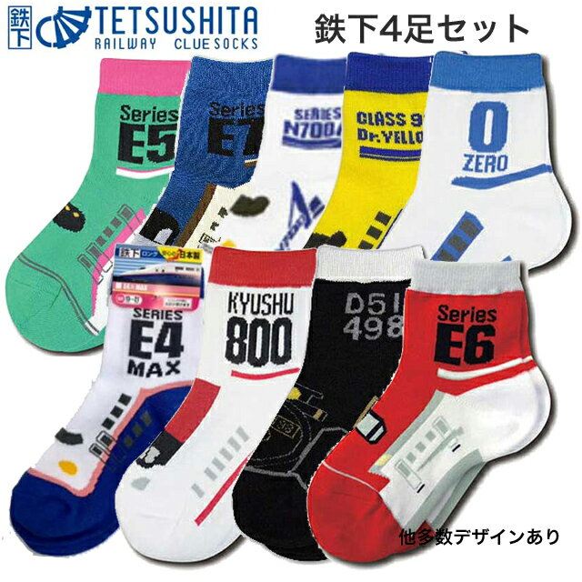 鉄下ロング 4足セット (お好きな組み合わせで4足お選び頂けます) クルー丈ソックス 鉄道をモチーフにした靴下 鉄道ソックス キッズサイズ キッズソックス くつ下 人気商品 プレゼントにオススメ 【定形外郵便配送】