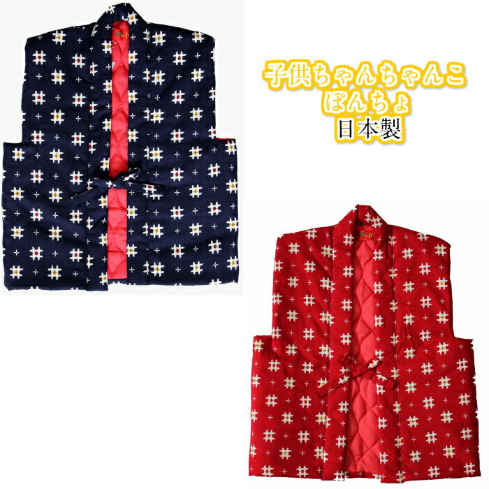 子供 ちゃんちゃんこ 半纏 はんてん ポンチョ 袖なし 男の子 女の子 男児 女児 井かすり 紺 赤 裏キルト 日本製 90 100 110 120cm【当店オススメ】