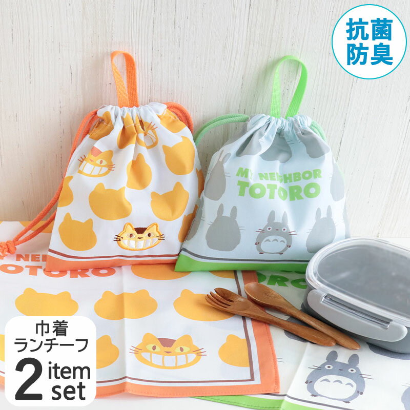 巾着 給食ナフキン 2点 セット トトロ ジブリ 巾着袋 ランチョンマッチ ランチーフ きんちゃく 刺繍 給食袋 コップ入れ ネコバス となりのトトロ かわいい お弁当 こども キッズ 抗菌 防臭 小学校 小学生 保育園 幼稚園 入園 入学 男の子 女の子 プレゼント //メール便発送可