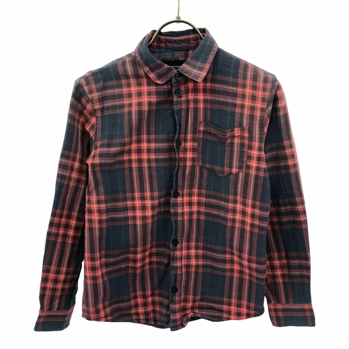 古着 Emporio Armani エンポリオアルマーニ チェック柄 ロゴ刺繍 長袖 シャツ 10A レッド系 キッズ 【中古】 【PD】