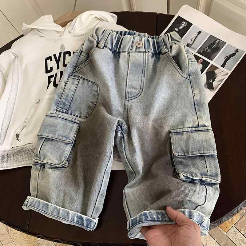 パンツ キッズ 男女兼用 男の子 女の子 綿 コットン ワーク カーゴ デニムパンツ 春秋 カジュアル ウォッシュ加工 ゆったり ワイド ルーズフィット ロング丈 着回し 韓国風 トレンド