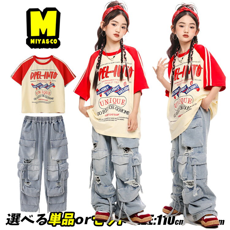 杏色 tシャツ 半袖 総柄 英字 オーバーサイズ ベージュ キッズダンス衣装 セットアップ ヒップホップ 男の子 女の子 カーゴ デニムパンツ デニム カーゴパンツ ダメージ加工 かっこいい hiphop 団体服 応援団 演出服 発表会 韓国 k-pop