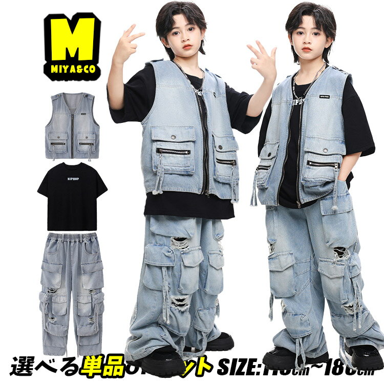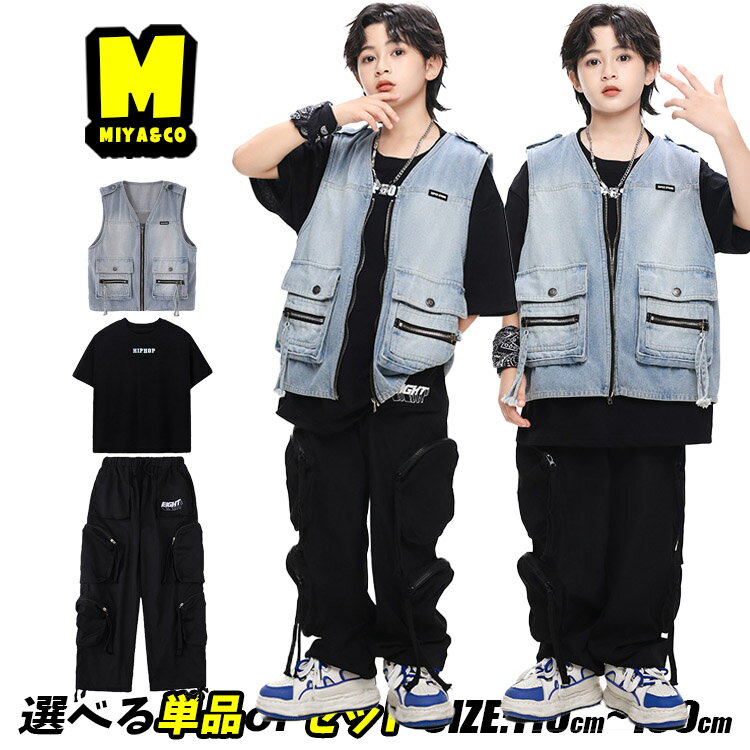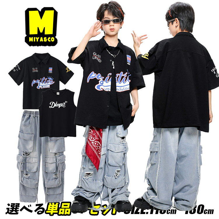 黒系 シャツ 半袖 総柄 キッズダンス衣装 セットアップ ヒップホップ 女の子 男の子 ブラック タンクトップ カーゴ デニムパンツ デニム カーゴパンツ ダメージ ダボパン かっこいい hiphop 韓国 k-pop 団体服 演出服 練習着 発表会 個性派 原宿系