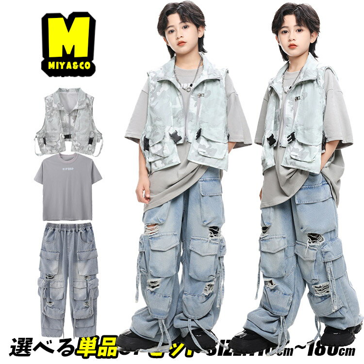 迷彩グレー ベスト 迷彩 灰 子供tシャツ グレー 無地 オーバーサイズ tシャツ 半袖 キッズダンス衣装 セットアップ ヒップホップ 男の子 女の子 カーゴ デニムパンツ デニム カーゴパンツ ダメージ加工 かっこいい hiphop 団体服 応援団 演出服 発表会 韓国 k-pop