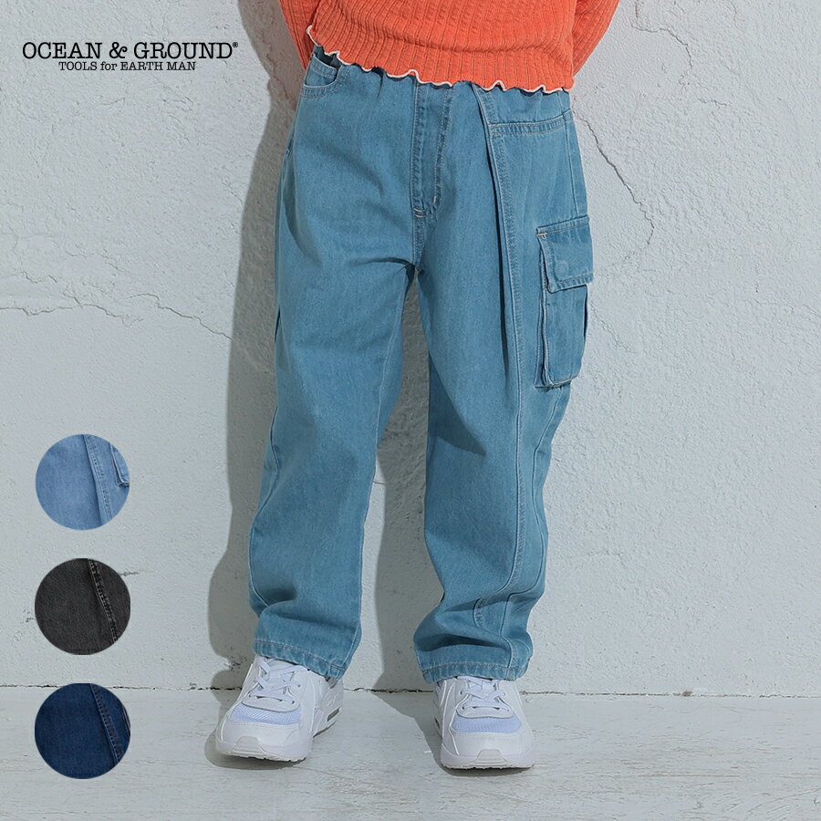 【公式】オーシャンアンドグラウンド アシンメトリーカーゴデニムパンツOCEAN&GROUND キッズ ベビー 子供服 女の子 男の子 パンツ ズボン ボトムス キャンプ アウトドア 80 90 100 110 120 130 140 4447007