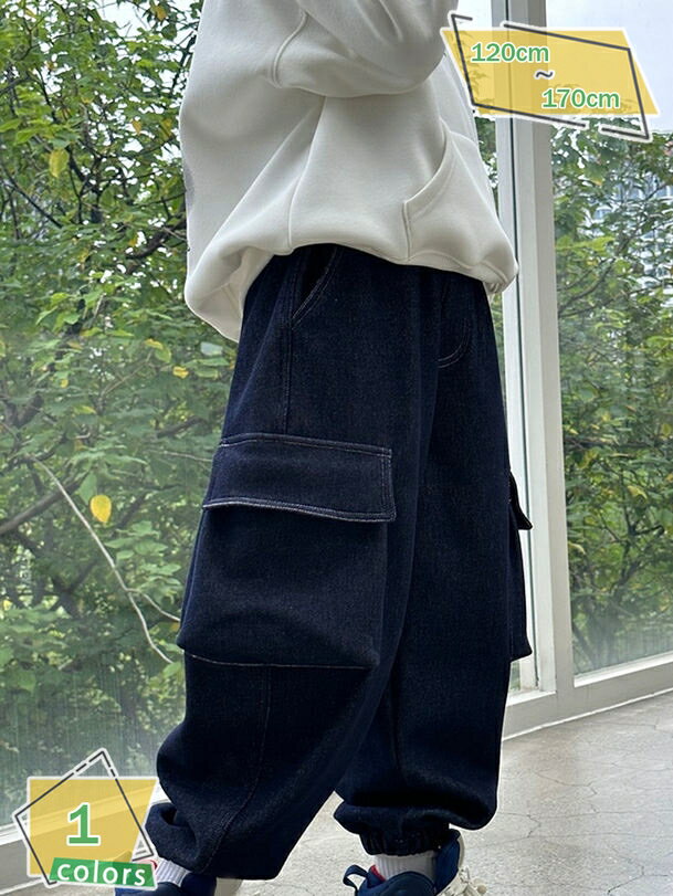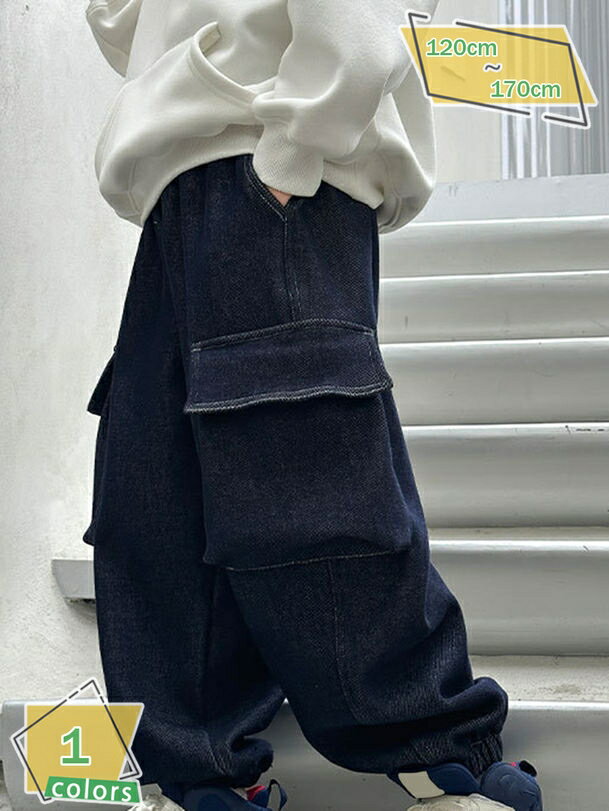 デニムカーゴパンツ カーゴ デニムパンツ ジーンズ デニムカーゴパンツ 130 子供服 ジュニア 長ズボン 男の子 子ども 女の子 120 160 150 ロングパンツ ワイドパンツ 170 おしゃれ かわいい キッズ こども ボトムス 無地 春 秋 冬 ストリート 通園