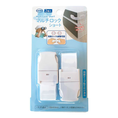 【用途】 ●小型の引き出し、小物ケース、小型の箱をロックしてお子さまのいたずらや事故、ケガなどを予防します。 【特長】 ●左右どちらからでもロック・解除が可能です。 ●両面テープで簡単に取り付けできます。 ●保護者の方には簡単にロック解除できます。 [サイズ]約幅35×長178×厚11 [重量]47g [材質] 本体:ABS、ベルト:ポリエチレン 両面テープ:アクリル系粘着剤 【使用上の注意】 ●お子さまは思わぬ行動をしますので、必ず保護者の目の届くところで使用してください。 ●ご使用前に取り付け面の目立たないところで、テープの端部分等を利用し、表面のはがれ落ち、のり残り等がないことをお試しの上、取り付けいただくことをおすすめします。 ●ご使用後はがす際に、素材によっては表面がはがれることがあります。 ※木(化粧合板)・壁紙、塗装面は特にご注意ください。また、のり残りがあった場合は、市販の「のりはがし液」等で拭き取ってください。 ●ご使用により発生したのり跡やはがれに関しての補償は出来かねます。 ●表面が弱い家具、高級家具には使用しないでください。 ●本商品が破損したり欠けた場合は使用しないでください。 ●本来の用途外には使用しないでください。 ●ロックを解除しないで無理に開けようとすると、本商品がはずれたり破損するおそれがあります。