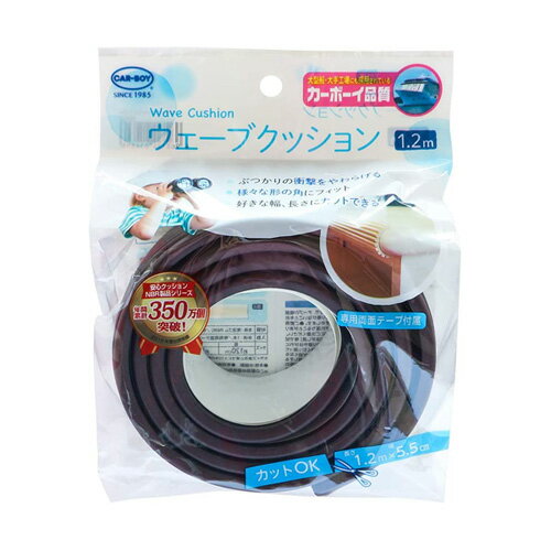 【用途】 ■ご家庭の危険箇所(コーナーや家具)での事故防止に。 【特長】 ●クッション性が高く、ぶつかったときの衝撃をやわらげます。 ●波型形状のため、いろいろな場所に取り付けられます。 ●専用両面テープ入りで簡単に取り付けられます。 【材質】 本体:発泡ゴム(NBR) 専用両面テープ:アクリル系粘着剤 【入数】 本体:1本 専用両面テープ(1シート2枚付) 【サイズ】 長:約120cm 幅:約5.5cm 厚:約0.7cm ※サイズ表示と実寸に±10%の誤差があります。ご了承ください。