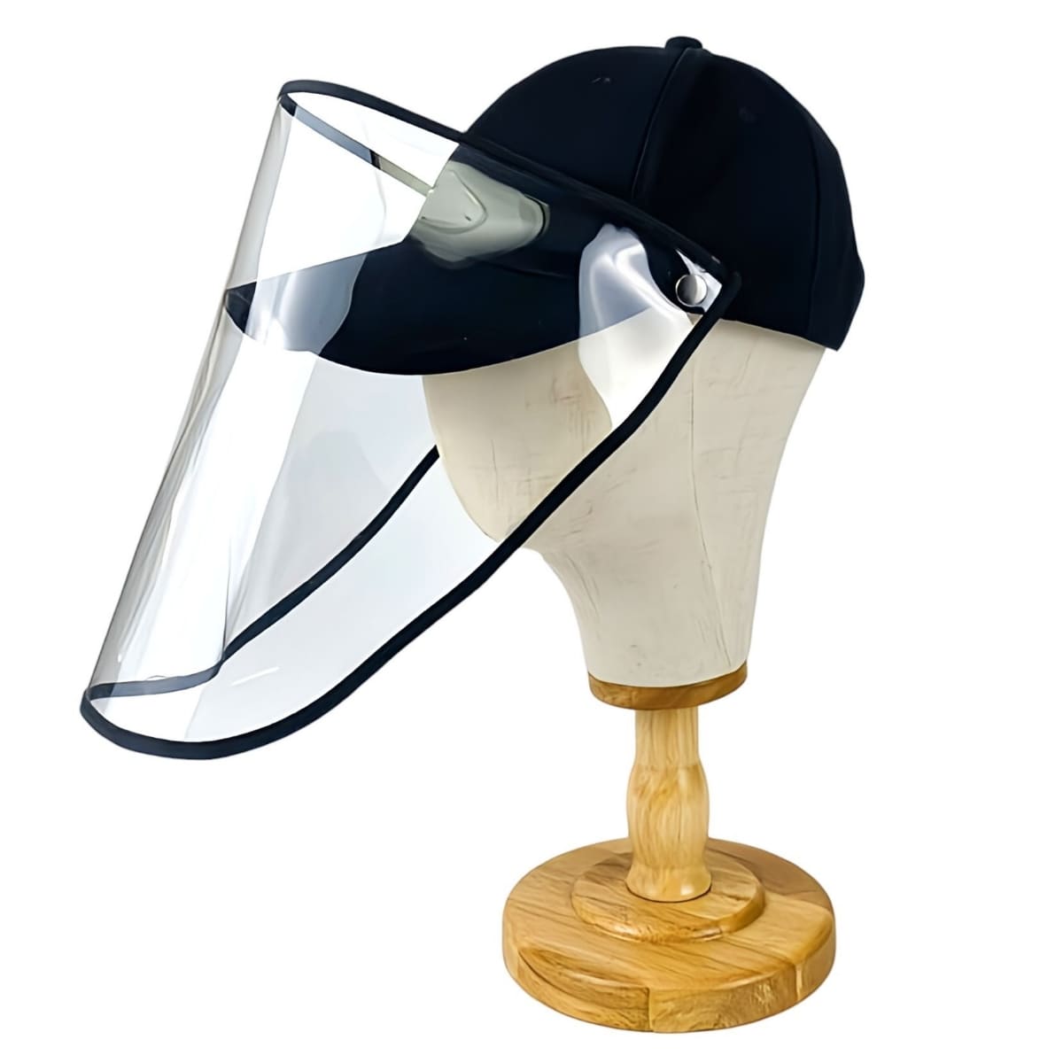 フェイスカバー付き キャップ 帽子 ブラック 防護帽 飛沫防止 UVカット ハット キャップ 取り外可 2WAY 男女兼用 素材:コットン、フェイスカバー部分:PVC サイズ:Fサイズ(フリー)頭周り56~60(cm)、フェイスカバー:41*25(cm)外作業、スポーツ、アウトドア活動に