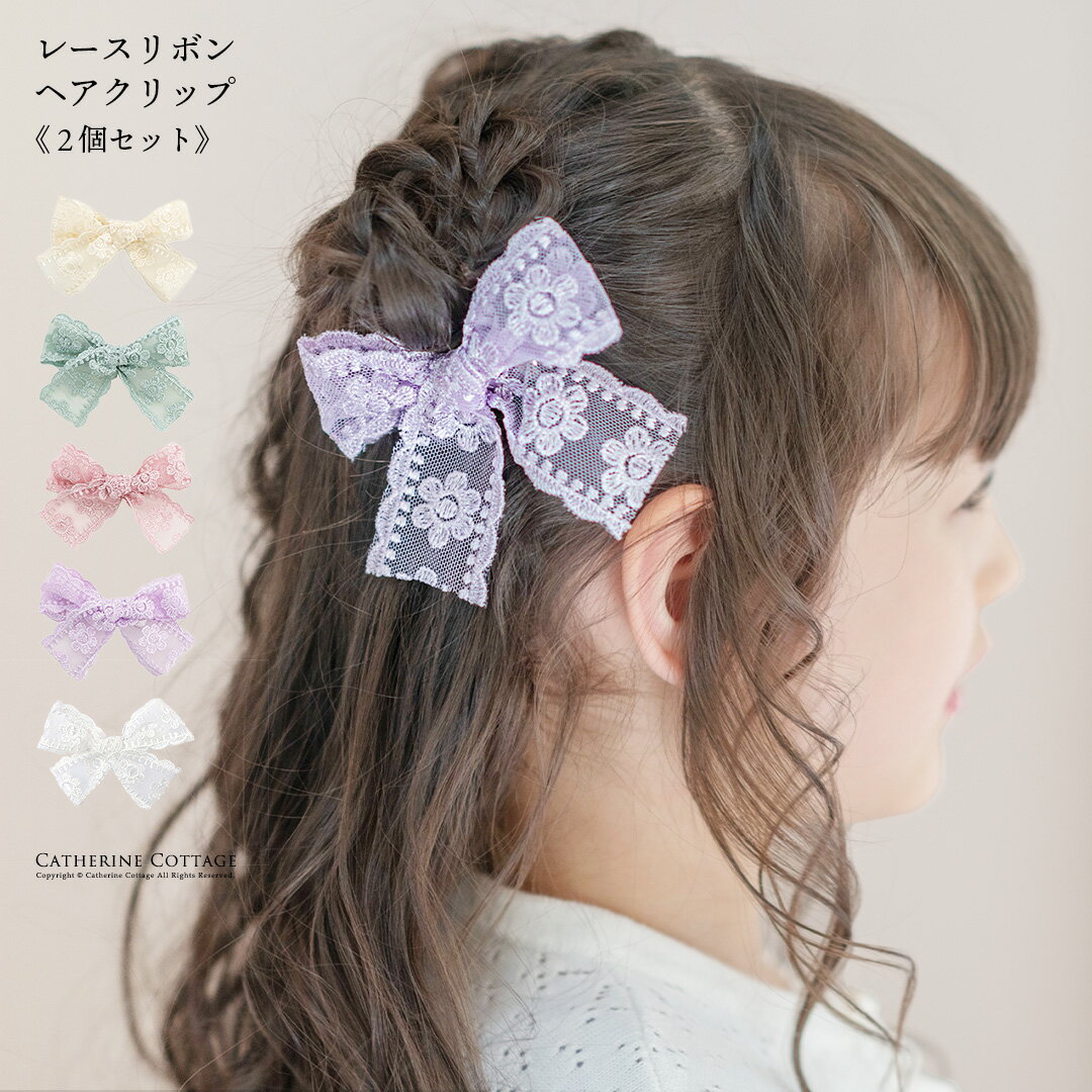 【メール便送料無料】超目玉 レースリボンヘアクリップ 2個セット アクセサリー ヘアアクセサリー キッズ YUP4 《メール便優先商品》 キッズ キャサリンコテージ fuku 超目玉