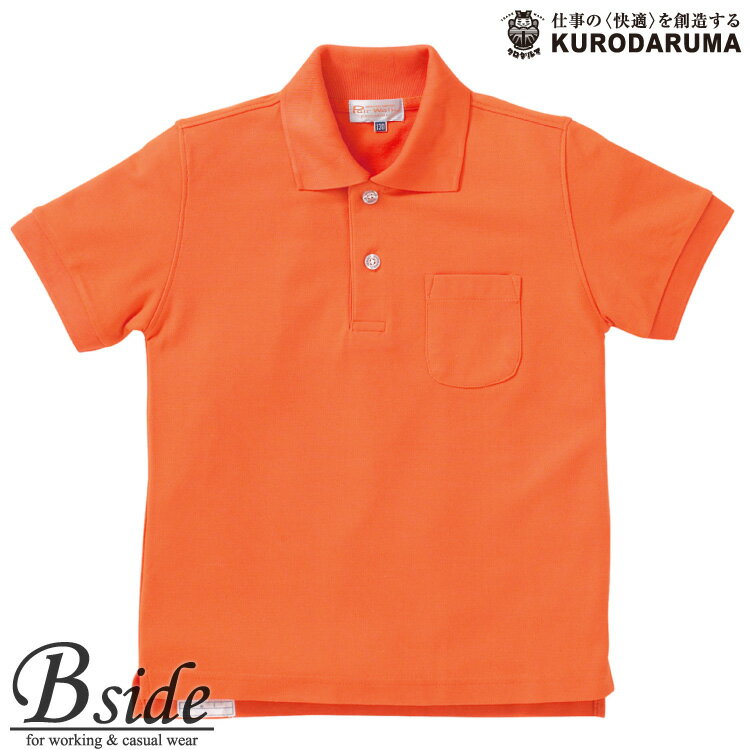 子供用半袖ポロシャツ 子供用 ポロシャツ ポケット有 半袖 T/C素材 トップス 吸汗速乾 鹿の子 脇スリット クロダルマ 26441J