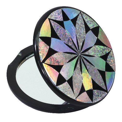 らでん彫コンパクトミラー 黒