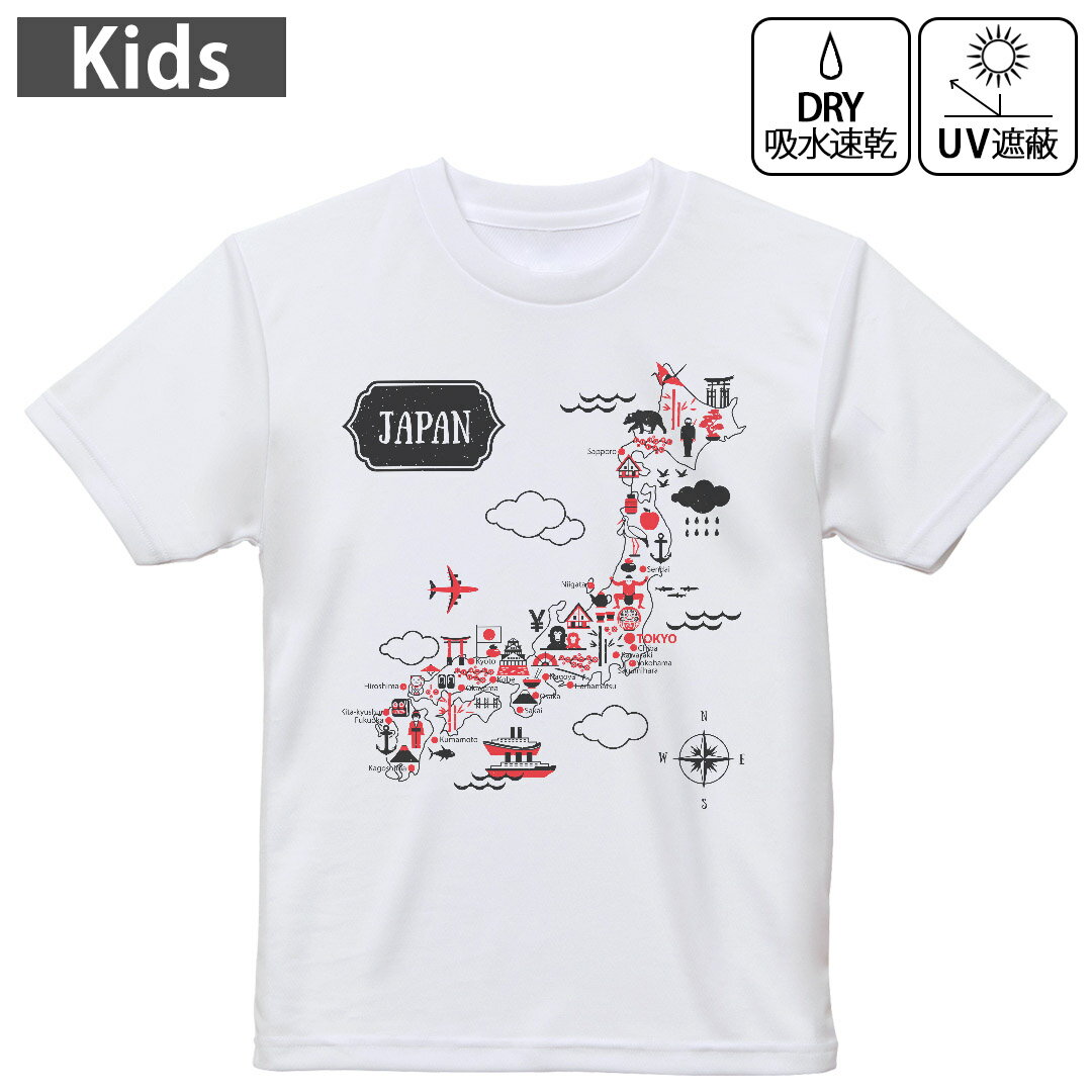 キッズ ドライTシャツ ホワイト 半袖 4.1オンス トレーニング スポーツ ジム 運動会 ドライアスレチック UVカット 紫外線遮蔽 吸水速乾 120 130 140 150 160 014136 日本 地図