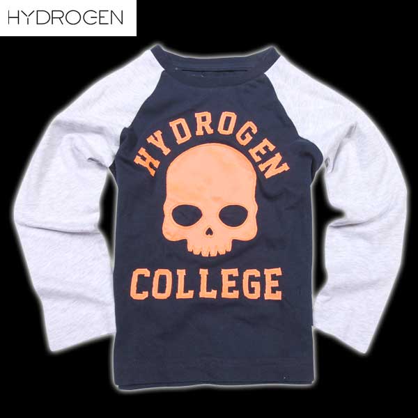 ハイドロゲン HYDROGEN キッズ 子供服 トップス カットソー トレーナー スウェット 長袖 ロンT スカルロゴワッペン・ツートーンロングスリーブTシャツ 紺ブルー/灰色 オレンジ ユニセックス男女兼用 146016 306 (R14700)