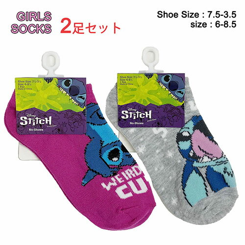 スティッチ 靴下 2足セット ( ピンク・グレー / 6 - 8 1/2インチ ) yts0773 Stitch 子供 くつした アンクルソックス くるぶし ソックス 女の子 幼児 ディズニー Disney キャラクター グッズ Socks 輸入品 インポート