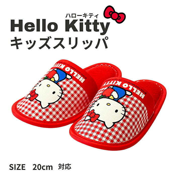 子供用 スリッパ ハローキティー タオル地スリッパ キティーちゃん 女の子 女児 人気 こども キッズ ルームシューズ 子供 室内履き キャラクター グッズ キティ 施設 病院 児童館 レッド 赤 35020 20cm