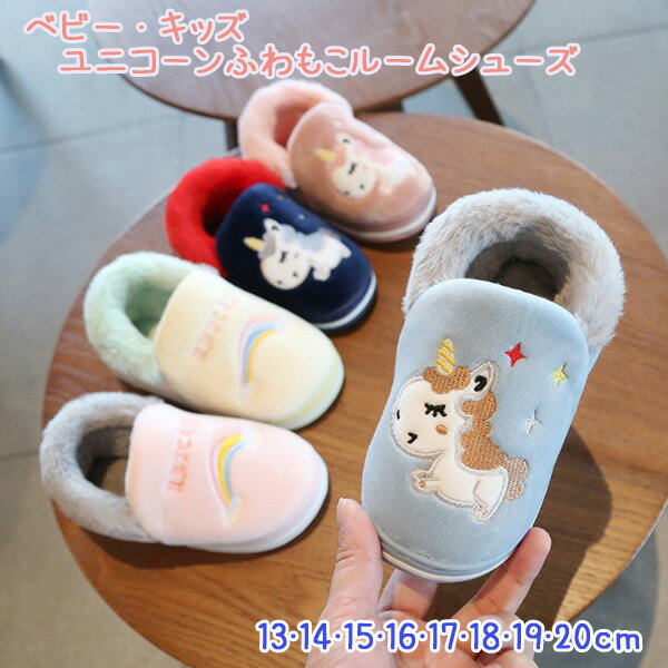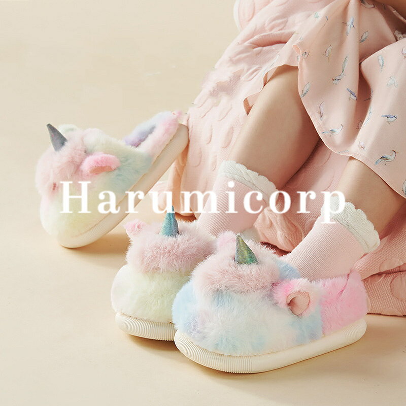 【訳ありアウトレット】【宅】ベビー キッズ ユニコーン ふわもこルームシューズ もこもこ ふわふわ ゆめかわ 虹 レインボー スリッパ 女の子 ガールズ 可愛い かわいい 子供 子ども こども 韓国 ギフト 誕生日 出産祝い プレゼント 秋 冬 姉妹 双子 rsac-k4 191122