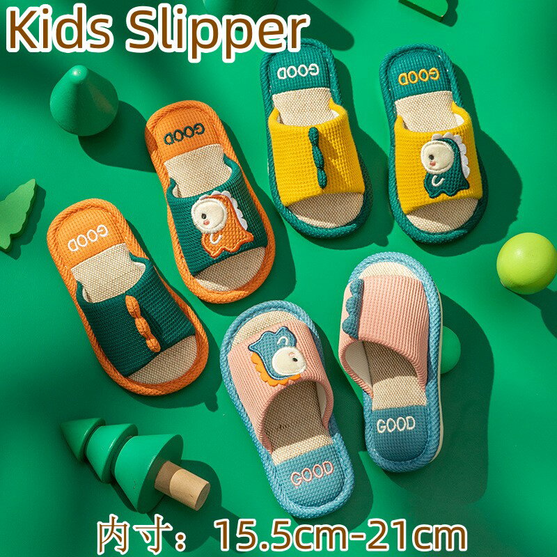 【Black Friday Sale!20%OFF】 キッズ スリッパ 室内 16cm~22cm 男の子 女の子 麻 リネン 滑りにくい 前あき 通年 子供 ルームシューズ 室内履き 滑り止め ダイナソー 恐竜 男女兼用 洗える お揃い 静音 春 夏 秋 冬 かわいい おしゃれ 軽量 未就学 小学生 履きやすい