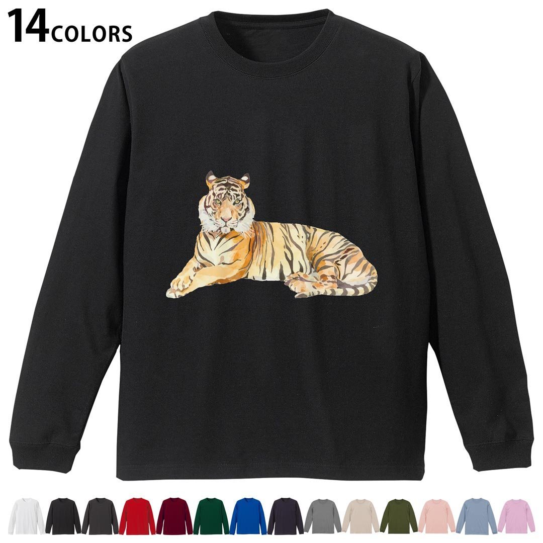 選べる14カラー 長袖リブ付きTシャツ メンズ レディース ユニセックス unisex 長袖 デザイン XS S M L XL 2XL Tシャツ ロング ティーシャツ T shirt 017543 トラ Tiger 動物