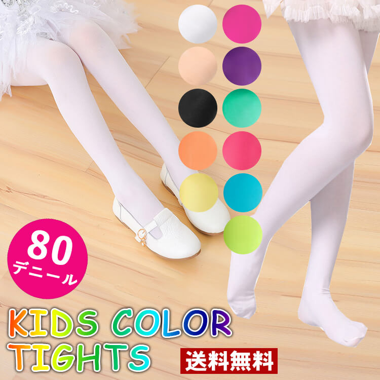 【送料無料】子供 80Dタイツ カラータイツ 女の子 白 黒 ホワイト ブラック お遊戯会 発表会 結婚式 入学式 ハロウィン 仮装 キッズ ダンス衣装 バレエ バレエアイテム キッズ靴下 ベビー靴下 体操 ジュニアくつした 無地 防寒対策 冷え防止 90-160cm対応