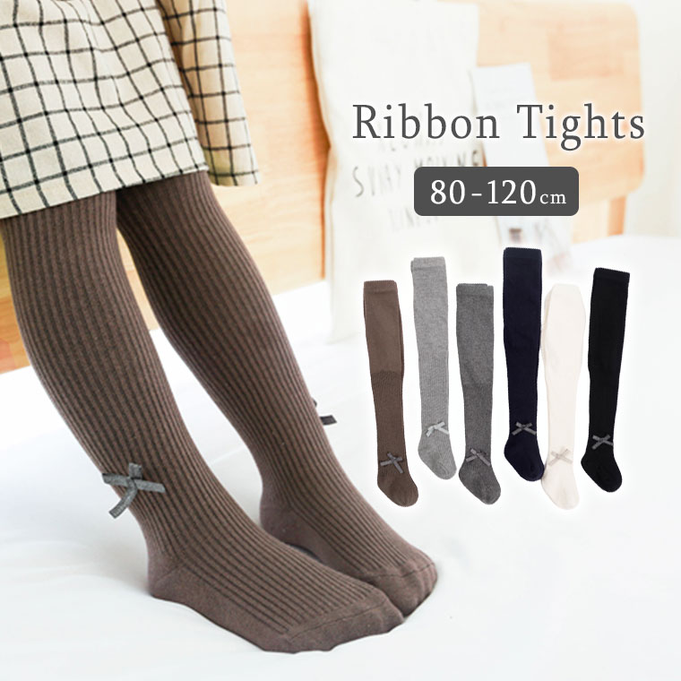 送料無料 キッズ タイツ キッズタイツ ベビータイツ 子供 ジュニア 女の子 秋 秋冬 ベビーナチュラル リボン フォーマル 子ども かわいい おしゃれ リブ リブタイツ 韓国 ホワイト 白 黒 80 90 100 110 120cm J0362 sale