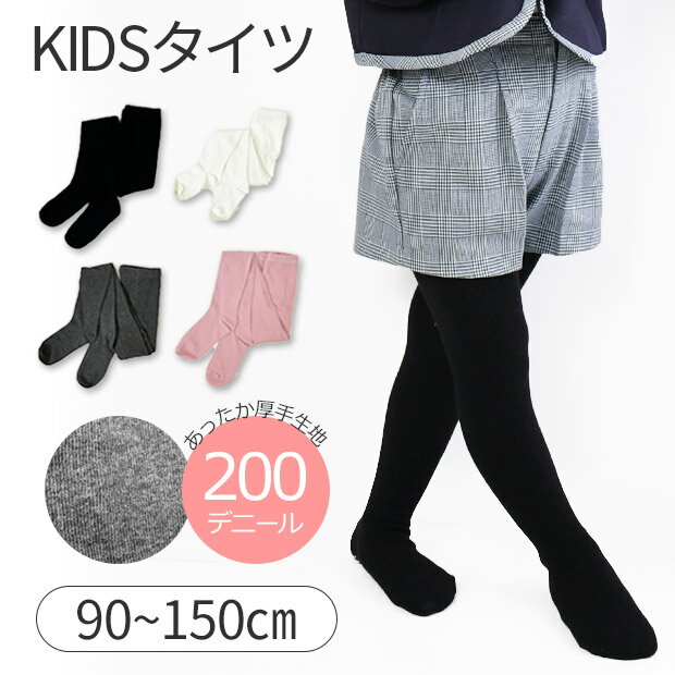 【送料無料】タイツ キッズ 冬 200デニール 厚め あったか 防寒 無地 黒 白 ホワイト ブラック 90cm 100cm 110cm 120cm 130cm 140cm 150cm ジュニア 発表会 おゆうぎ会 通園 通学 子供 タイツ 厚手 綿混 男の子 女の子 保育園 幼稚園 子供服 グレー チャコール ピンク