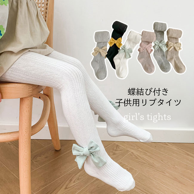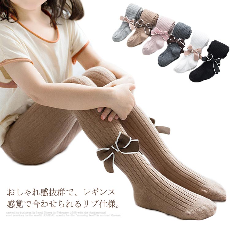 【送料無料】キッズタイツ 女の子 春 タイツ 子供 リブタイツ 蝶結び リボン 女児 コットンタイツ 綿混 スパッツ レギンス 春秋タイツ ジュニア ガールズ リボンタイツ ストレッチ おしゃれ ホワイト ピンク