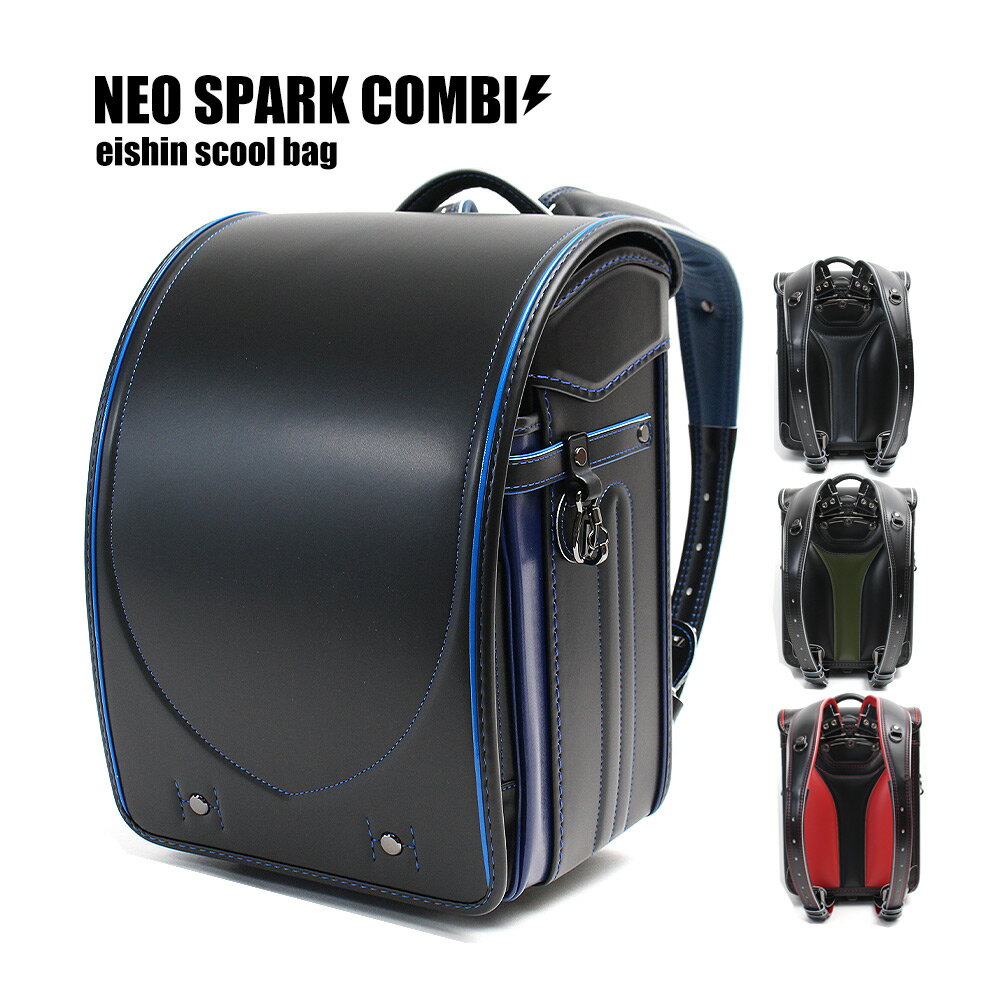2026年度入学モデル ネオスパークコンビ エイシン ( クロ×マリンブルー クロ×アカ クロ×カーキ クロ×ガンメタ)ランドセル 軽量 軽い 男子 女子 人工皮革 負担の少ない 人気