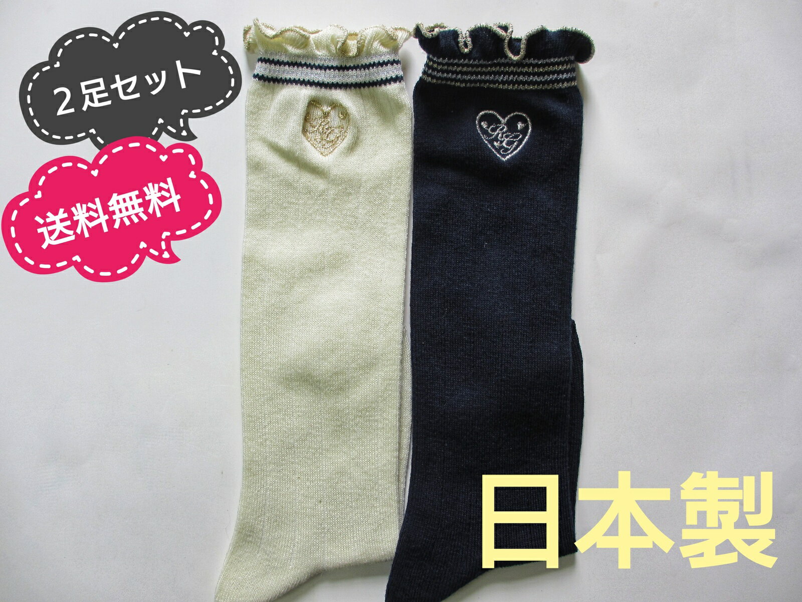 【ヤマモトソックス】 日本製 2足セット 送料無料 子供 靴下 キッズ 女の子 子供用靴下 ハートドット柄ラメ入りハイソックス16〜18cm、19〜22cm