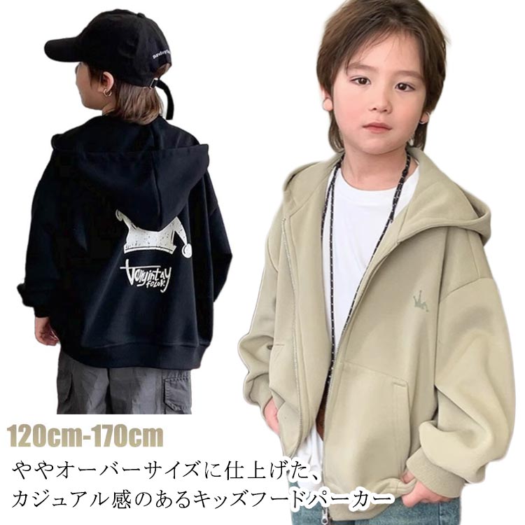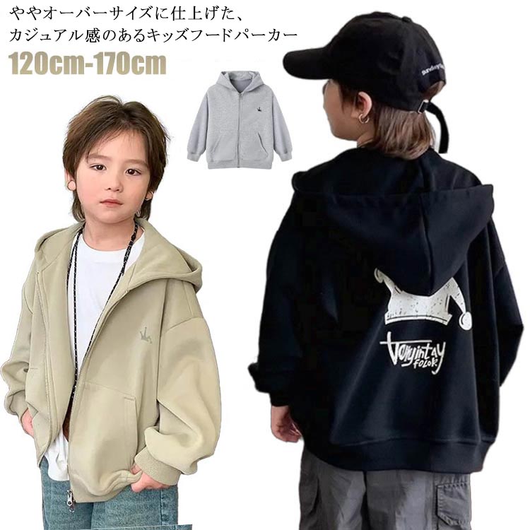 ジップパーカー キッズ 子供服 男の子 女の子 プリント パーカー ジャージ スウェット 羽織り ジップアップパーカー フードあり 秋物 秋服 ジュニア 韓国子供服 170cm 120cm 130cm 140cm 150cm 160cm 送料無料