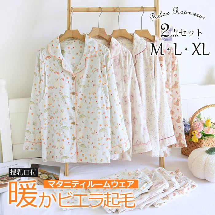 マタニティ パジャマ 冬 ビエラ起毛 授乳 パジャマ 長袖 部屋着 上下セット マタニティー あったか 防寒 授乳口 パジャマ ルームウエア上下セット 前開き 妊娠 可愛い 綿 出産後ナイトウエア 冬 暖かい プレゼント 新年祝い 4柄M/LXL