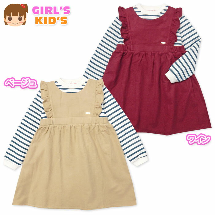 【送料無料】女児 キッズ 裏起毛 ビエラ起毛 長袖 ワンピース あったか素材 重ね着風 ボーダー柄 フリル 子供服 女の子 110cm 120cm 130cm nw-0606【メール便対応】