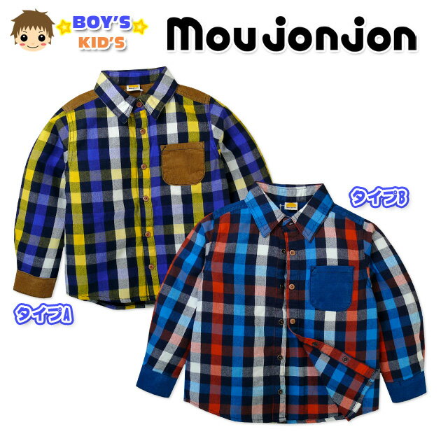 【送料無料】【男児キッズ】【シャツ】moujonjon/ムージョンジョン 先染チェック柄&ビエラ生地 微起毛長袖シャツ【100cm】【110cm】【120cm】【メール便対応】