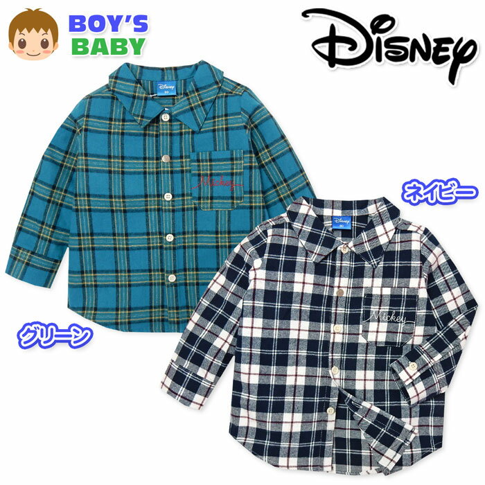【送料無料】男児 ベビー 長袖 シャツ Disney/ディズニー ビエラ 綿100% チェック柄 ミッキープリント 刺繍 ベビー服 男の子 90cm 95cm iw-0030【メール便対応】