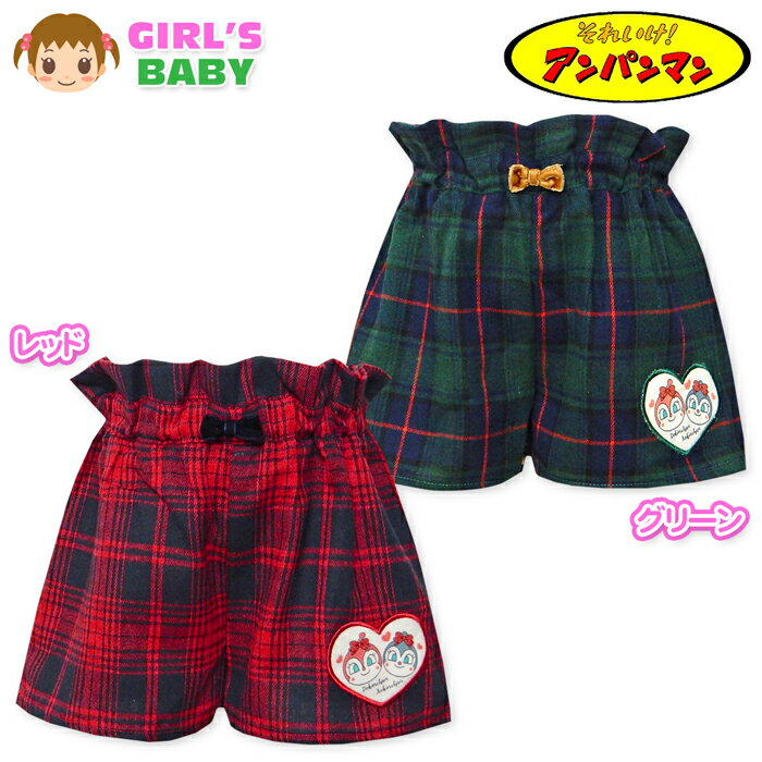 【送料無料】女児 ベビー ビエラ キュロット アンパンマン ドキンちゃん ハートワッペン リボン ウエストゴム ボトムス ベビー服 女の子 80cm 90cm 95cm iw-1173【メール便対応】